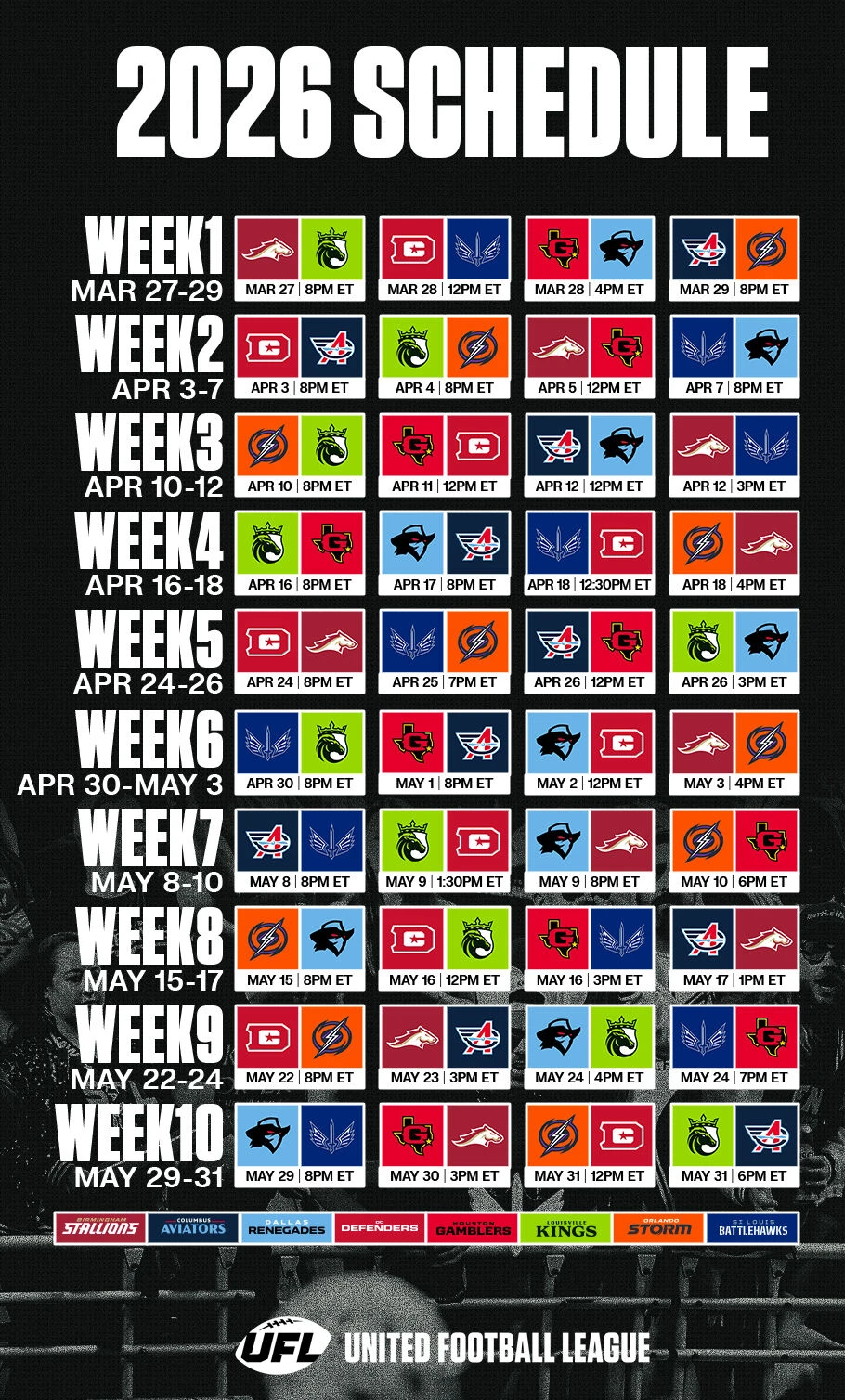 2026 Battlehawks Schedule